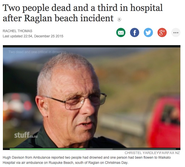本月26日,正值圣诞假期,本应和朋友幸福快乐的在一起,等待着新年的到来,可由于自己的大意,最终命丧大海,两名中国人被确认遭遇离岸流死亡。新西兰今年海边频繁出现离岸流,新西兰的部分海边出现了一种“隐形杀手”,在今年已经夺取了6个人的生命。因为离岸流所导致的死亡人数继续攀升,已近百人。就在圣诞节期间,6名中国人,来到Raglan附近的Ruapuke沙滩游泳,其中一名33岁中国男子和一名40多岁中国女性不幸溺水身亡。另外有一名30岁的中国男子,在别人的帮助下,侥幸逃生。该6人来到这里的时候,并没有沙滩巡逻员,死亡男子也并未穿游泳裤,而是一条棉短裤。