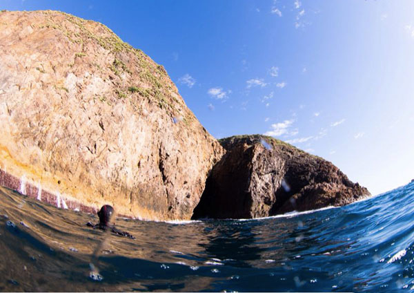 穿过沉船开口还是从沉船里游过?同样,顺着浪到边缘处,退浪时hold住,然后等到浪间歇时游过,或者从沉船开口处离开,而这个地方也是涌最强的。小心靠近。最好在沉船开口处放一个短梯。