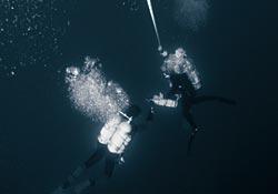 当 Jim 和 Ai 到达沉船顶部时,他们发现大量的气泡跨过栏杆从船侧涌出,他们震惊的发现 Jack 正在沙地上爬行。互相快速通过手势沟通,潜水员达成协议,Ai 去协助 Jack , Jim 从栏杆那观察随时准备协助。Ai 很快发现问题,他抓住 Jack 的气瓶阀门,给自己的BC充气,将他的朋友拖回栏杆,在那里他和jim可以搬 动Jack到锚索附近。在潜伴们的协助下,jim手脚并用沿着锚索向上并完成他的减压停留。通过大家的努力,潜水员和船员将Jack拉上了船。
