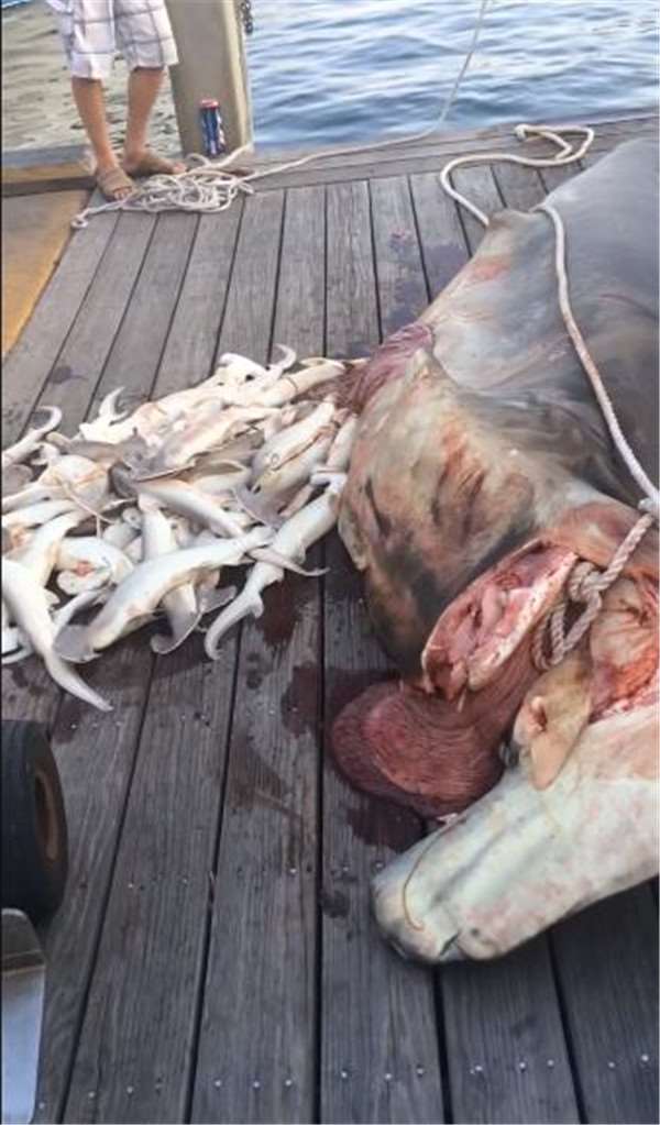原来肚子会肿大的原因是,这只锤头鲨已经怀孕了,肚子里有整整34只可爱的小鲨鱼。所有人都傻了,因为自己的失误而让这么多小生命牺牲,没有人不感到懊悔。