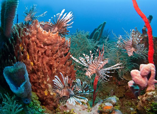 十年前,水族爱好者在无意中将狮子鱼引入了加勒比和美国东南部海域,由于缺少自然天敌,导致这种鱼类的数量暴增。一条成熟的雌性狮子鱼每年能产两百万枚鱼卵,这些卵和孵化出来的幼鱼会被洋流带出很远,于是这种狮子鱼的入侵地盘被进一步扩大。佛罗里达自然历史博物馆鲨鱼研究部的主任乔治·伯吉斯表示,这些狮子鱼如同是海洋中的老鼠,所有海域都能看到它们的身影,怎么也赶不走杀不绝。肉食性的狮子鱼对加勒比海域的珊瑚礁系统特别不利,它们会通过食物竞争来排挤鲷鱼和石斑鱼这些本地鱼类。此外,狮子鱼还会淘汰处于食物链底层的有用物种,如食草性的鹦鹉鱼,它能防止挤压珊瑚礁的海草和海藻过度生长。
