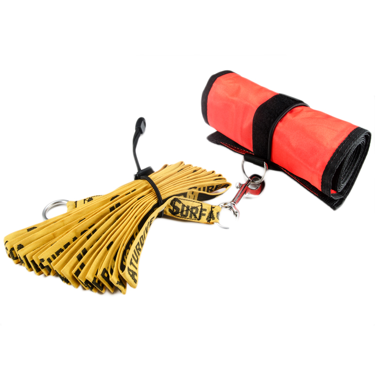• 水面信号装备。当你潜水,拖曳船只的锚或系泊索可能会断了,把这变成一次活动的船潜。暴风雨或可能产生比你预期更强的水流,把你拖离航道。这时船离你可能会一些距离,准备一些能让船长找到你的水面标识,视觉和声音两种都要。