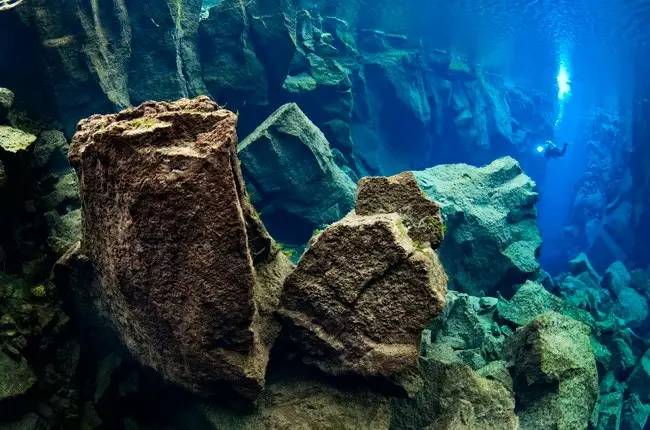 Silfra正是这样一个地处欧洲和美洲交界的大裂谷,潜入被海水掩盖的板块裂缝中,可以目睹大教堂般的裂隙形状,还有分隔地球地壳的缝隙。