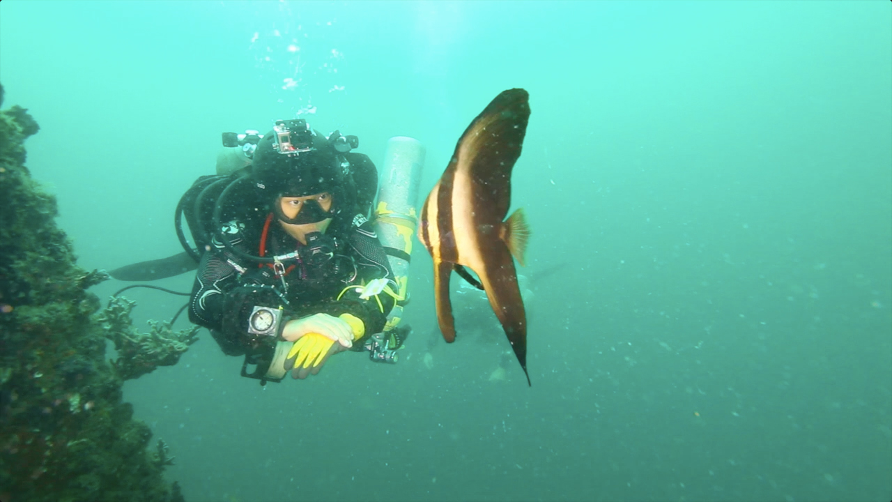视频截图-常住居民鱼儿对潜水员的到访表现得非常友好