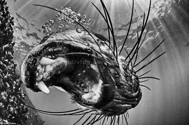 深海中有危险的动物,但同时也有可爱的生物,这个萌系的小海豹攀上了摄影师的深水蹼,露出好奇的表情,摄影师尼克·布莱克在布里斯托下水时抓拍下了这一瞬间。也正是这张照片为他赢得了世界规模最大的水下摄影比赛的奖项。此次比赛总共有超过6000张的摄影作品参赛,而主题也是多种多样,从潜水到沉船、从鲨鱼到水下服饰秀等等。大赛的举办方说:“这个比赛给那些追求极限的摄影爱好者们提供了一个平台,在糟糕的环境下捕捉精彩的瞬间,这是非常需要天赋和努力的。”这张在墨西哥透明海水中潜水的美图获得了大赛银奖。大赛的最高荣誉则是另外一个英国人拿到的,特里·斯蒂尼(TerrySteeley),今年46岁,三年前才第一次拿起摄像机。他的获奖作品是巴哈马群岛的一只柠檬鲨,特里用光圈抓下了它潜水的过程。比赛的参赛者也来自世界各地,保加利亚、美国、法国、加拿大、德国、泰国等许多国家的摄影师都积极的参与。图中仍然是特里的作品,记录了红海中的印度马鲛鱼群。图中是摄影师捕捉的狗母鱼吞食猎物的瞬间。逆着日光的舞者,仿佛水中的女神。保加利亚摄影师普拉米拉·米列娃拍摄了一个女模在沉船中的造型。来自南非的摄影师杰奥·科鲁迪拿到了一枚金牌,图中是他拍摄的海豚在水面跳跃的情景。这是南非摄影师镜头中冲下水面张开嘴的海豹,獠牙清晰可见。图中是摄影师马蒂记录的潜水员前往飞机废墟的情景。模糊的沉船和潜水者,这是摄影师保罗·科里的作品。图中是摄影师拉乌尔拍摄的从海底向上游的潜水者。摄影师克雷格记录了一只幼年座头鲸在它的家长带领下浮上水面的过程。这个古老而新奇的生物至今仍然存在于印度尼西亚海域,这是一种裸鳃目生物。箱形水母的美丽也为摄影师史蒂芬拿下了一枚金牌。即将破壳而出的乌贼,摄于莫桑比克海峡,摄影师是瑞典的珍妮。此次比赛有17个分类,每个分类都设有金、银、铜三个奖项,而评委都是无偿、无利益关系的,当然他们也不能投自己。图中是日光下的魔鬼鱼,最长展开可以到达9米,摄影师镜头下充满了神秘的色彩。