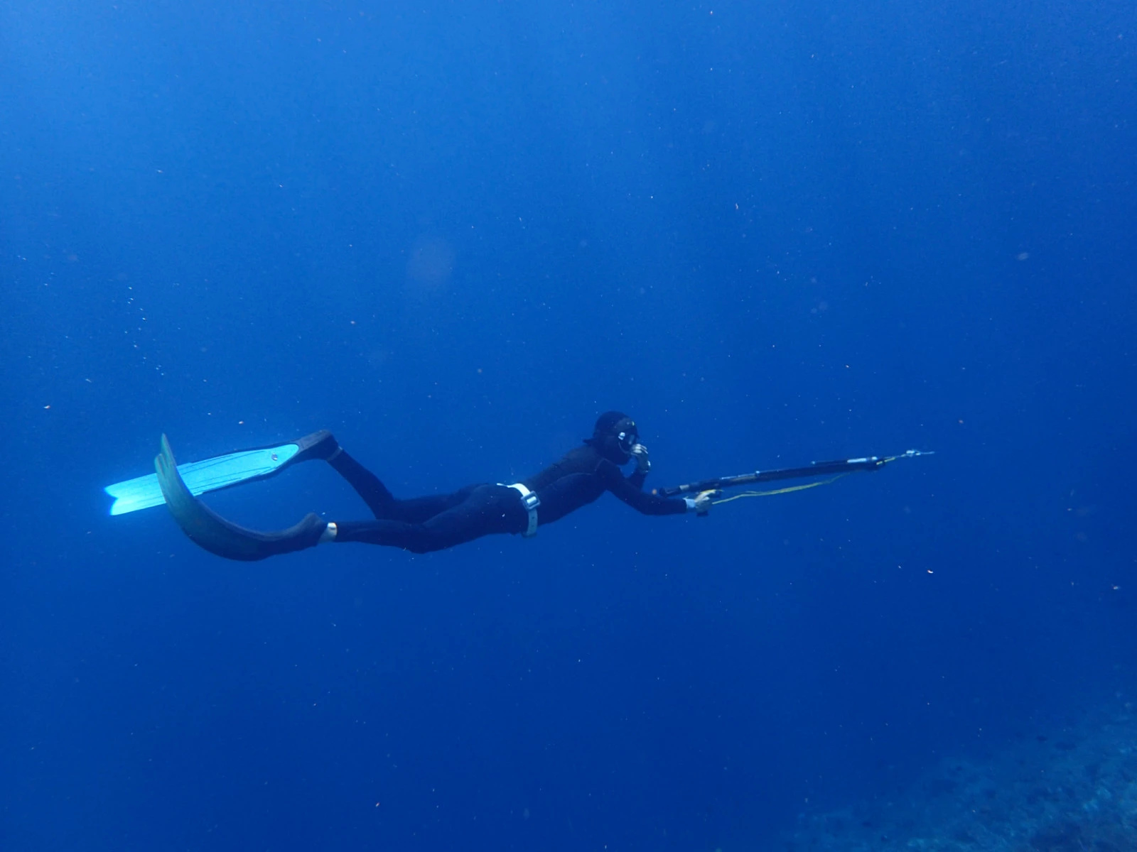 调整自己的呼吸,深深地吸气,缓缓地吐气,想象自己的心跳也渐渐放缓,自己开始和这片水融为一体。注意,不要这么快就让身体彻底地放松。最后三口深呼吸,踢腿,下潜,双手指向大海的方向,不断耳压平衡。