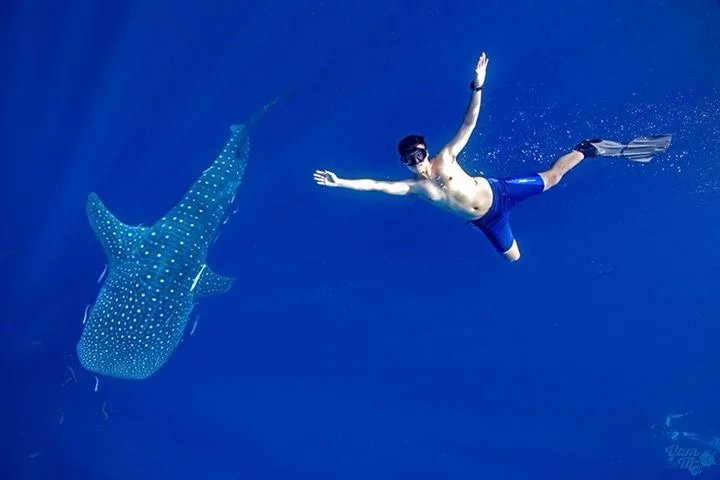 就像水肺潜水的核心在于“中性浮力”,自由潜水的核心在于“耳部压力平衡”。一个合格的自由潜水员,掌握了头下式快速耳部压力平衡,可以凭借一口呼吸,徒手下海十几米乃至几十米,融入这片蔚蓝的大海,和鲸鲨同游,与蝠鲼共舞,光芒万丈魅力四射有木有!