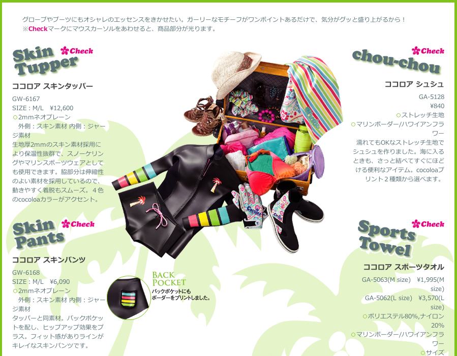 Cocoloa是日本时尚沙滩服饰品牌,2010年与潜水品牌合作推出系列产品,令潜水充满了时尚的感觉!