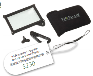 RGBlue屏幕放大镜,适合送给拥有数码相机或无反相机的水下摄影人。四英寸大小,具有两倍放大效果,让相机的液晶屏所呈现出的影像能达到最理想的放大倍率。这组放大镜搭配坚固且超级小巧的微型伸缩臂灯组,可装附于相机防水壳上,便于在按下快门前放大影像、仔细的检视构图细节。这款精巧的小工具改善了许多摄影师在水中很难看到的清晰度。