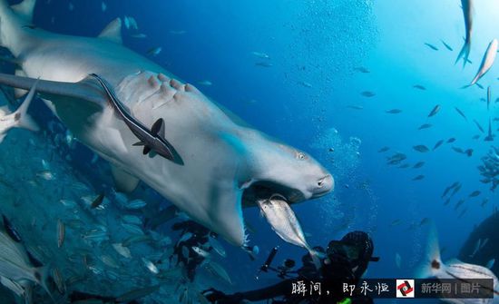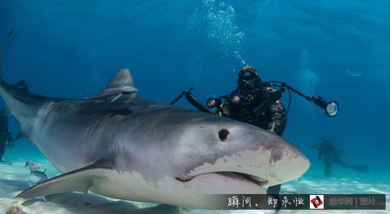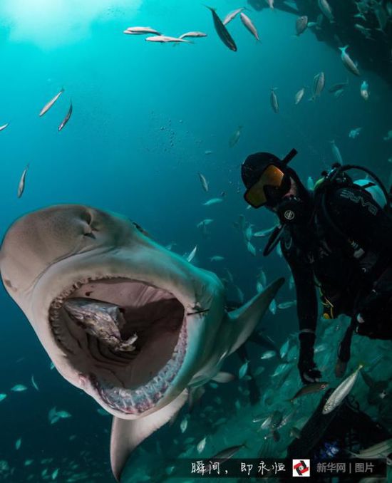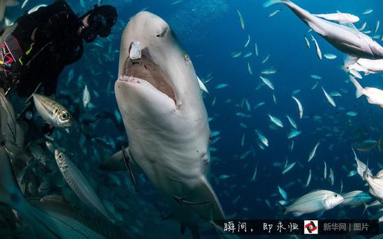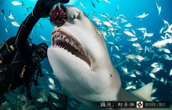 如此近距离的鲨鱼喂食,你敢不敢?,英国摄影师拍下了这组潜水员在蔚蓝的海底与虎鲨、柠檬鲨亲密接触的照片,勇敢的潜水员时而用手抚摸鲨鱼,时而给其喂食,时而还与鲨鱼合影自拍,画面看上去十分惊险。新华网