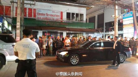 之后,陪同孟书记一同视察了酒吧街。行进中不时有中国游客认出了是孟书记,频频挥手致意。在结束视察临上车前,孟书记亲切地与陪同的中国籍志愿旅游警察牛仔握手交谈,期间还用拳头轻打牛仔的胸说:“小伙子身体真壮”,“辛苦啦!”,孟特使还特意嘱咐贴身陪同的普吉中国籍志愿旅游警察要做好协助泰警方以及帮助中国游客沟通的工作。牛仔也表示:“作为在泰国的中国籍旅游警察一定会做好协助泰警方和帮助中国游客的工作。”
