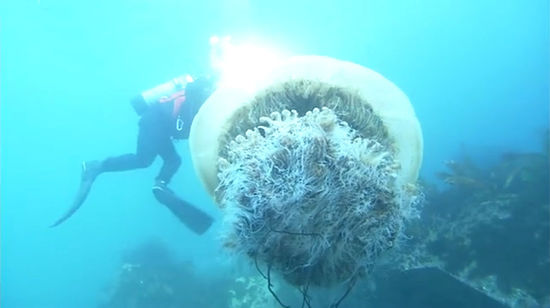 摄影师日本深海潜水遇罕见巨型野村水母