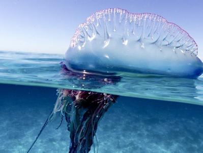僧帽水母——听上去善良确致命的杀手,僧帽水母(学名:hyslhysls),又称葡萄牙战舰,是一种管水母。虽然僧帽水母像水母,但其实是一个包含水螅体及水母体的群落。每一个体都高度的专门化,互相紧扣,而不能独立生存。僧帽水母栖息在海平面,部份像帆浮在水面上,其余部份则在水底下。它