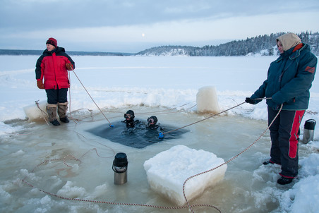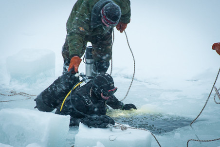 跟你想的不一样,在白海潜水可不是去了就能开搞。一切都得重新学习,才能取得冰下潜水证,甚至保持潜水服干燥,以及系统的泵气方式这种都得学,这都是为了不潜着潜着就头朝下脚朝上的冲出了水面…