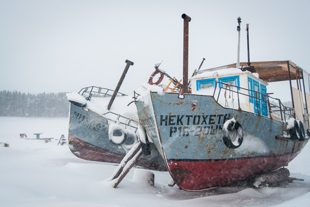 海湾靠岸的地方,到处都是被冰封的渔船