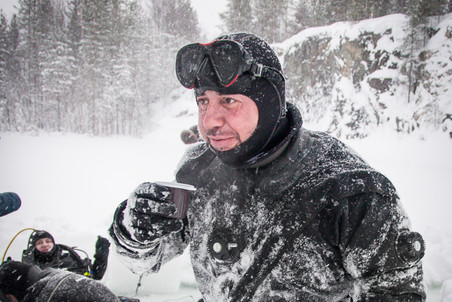 骄傲的用茶来庆祝潜水成功!冰下潜水的那些辛苦和艰难瞬间都烟消云散了。