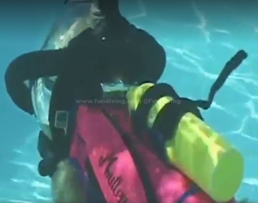 看着BCD鼓鼓的,应该是充过气的▼做Trim保持平衡▼“蛙踢”▼跟自己的buddy一起潜水▼在水下看震撼的鱼群▼除了狗狗潜水,